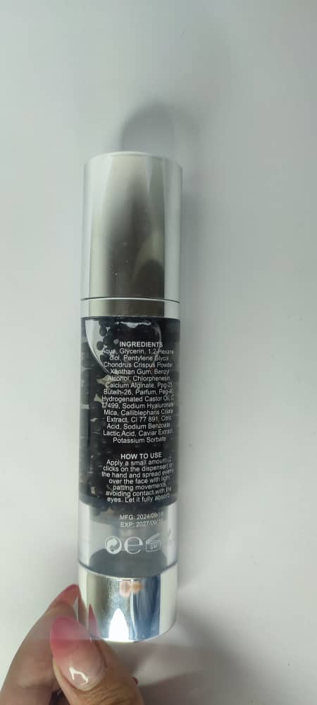 • ترکیبات اصلی: عصاره خاویار، هیالورونیک اسید، ویتامین C، نیاسینامید، پپتیدها